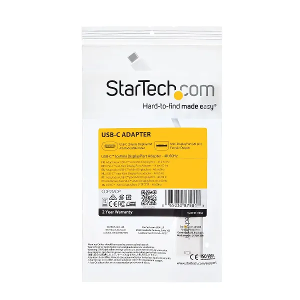 El adaptador StarTech USB-C a Mini DisplayPort permite conectar dispositivos con puerto USB-C compatible con salida de video —como notebooks, ultrabooks y estaciones de trabajo— a monitores y pantallas que utilizan entrada Mini DisplayPort, entregando una transmisión de video digital clara y estable.