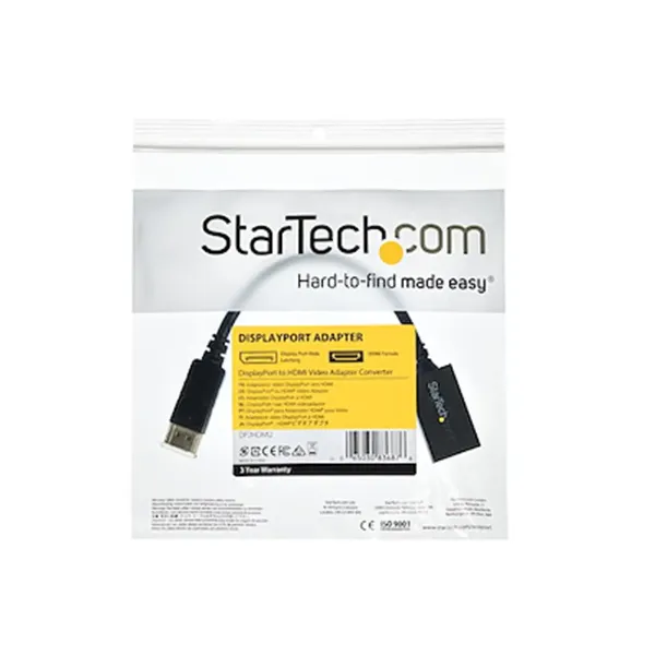 El adaptador / cable StarTech DisplayPort a HDMI permite conectar equipos con salida DisplayPort —como computadores, notebooks, tarjetas gráficas y estaciones de trabajo— a monitores, televisores o proyectores con entrada HDMI, entregando una transmisión de audio y video digital clara y estable.