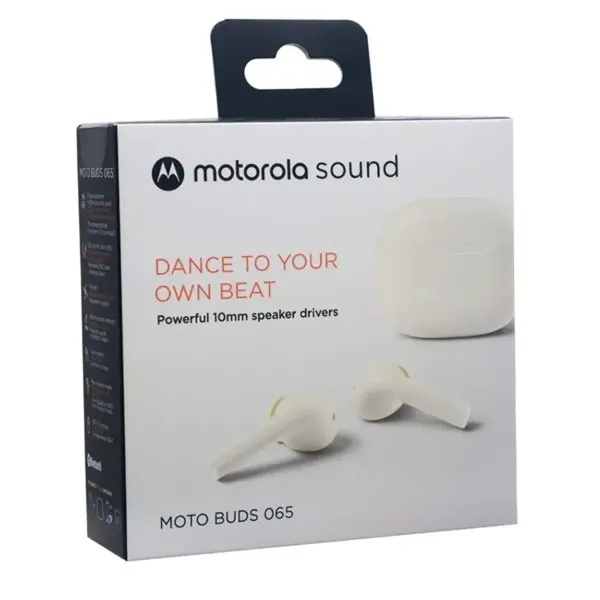 Los audífonos Bluetooth Motorola Buds 065 True entregan una experiencia 100% inalámbrica (True Wireless), ideal para música, llamadas y uso diario. Su diseño earbuds compacto y ergonómico proporciona un ajuste cómodo y seguro, perfecto para acompañarte durante toda la jornada.