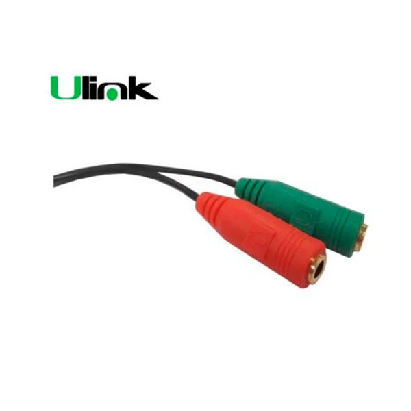 El cable adaptador de audio ULINK 0150159 permite dividir una salida de audio jack 3.5 mm en dos salidas jack hembra, ideal para compartir música o sonido entre dos audífonos o dispositivos de audio simultáneamente.