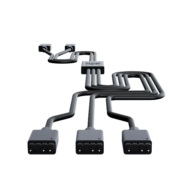 El cable splitter RGB Cooler Master MFX-AWHN-3NNN1-R1 permite dividir una señal RGB en tres salidas, facilitando la conexión de ventiladores RGB, tiras LED y otros accesorios de iluminación compatible a una sola cabecera RGB de la placa madre o controlador.