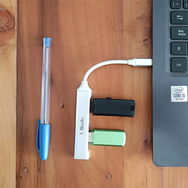 El hub ULINK UL-HUBC400 USB-C permite ampliar la conectividad de dispositivos con puerto USB-C, agregando 1 puerto USB 3.0 y 3 puertos USB 2.0 para conectar pendrives, teclados, mouse, impresoras, discos externos y otros periféricos USB de forma simultánea.