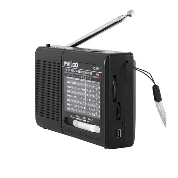La radio portátil Philco IC-X65 es una solución versátil y compacta para disfrutar de tu música y emisoras favoritas en cualquier lugar. Incorpora conectividad Bluetooth, permitiendo reproducir audio de forma inalámbrica desde smartphones, tablets y otros dispositivos compatibles.