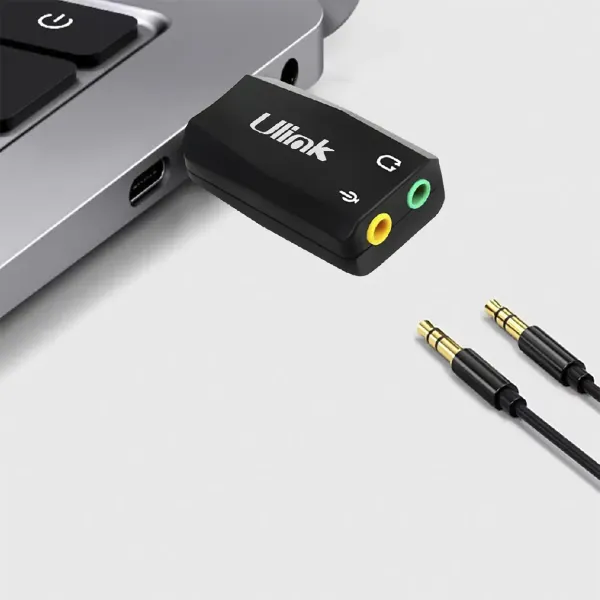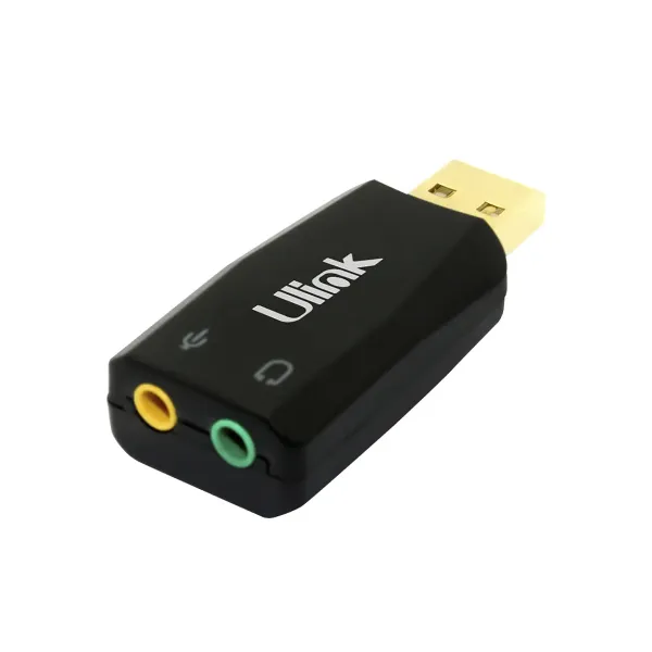 La tarjeta de sonido USB ULINK UL-ADSND es una solución práctica y eficiente para añadir o reemplazar una entrada y salida de audio en computadores y notebooks. Se conecta vía USB 2.0 y proporciona puertos de audio 3.5 mm, permitiendo conectar audífonos, micrófonos, parlantes u otros dispositivos de sonido de manera sencilla.