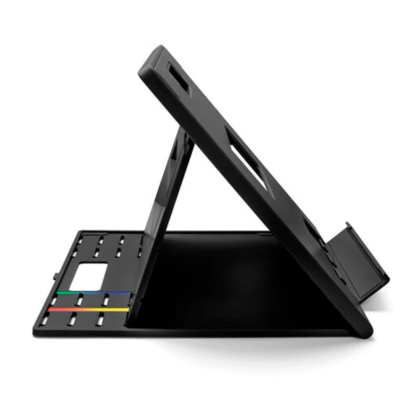 Este soporte permite elevar el portátil hasta aproximadamente 18 cm para lograr una visión más cómoda de la pantalla, lo que favorece una postura ergonómica correcta. Su estructura plegable de doble pie ofrece múltiples opciones de configuración, mientras que las almohadillas antideslizantes aseguran que el dispositivo permanezca estable. El diseño también mejora la circulación de aire alrededor del equipo, ayudando a disipar el calor y prolongar la vida útil de la batería y componentes internos.
