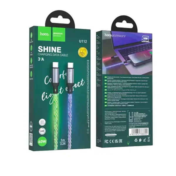 CABLE CARGA/DATOS USB C M/M LED 3A 60W 1MT U112 HOCO