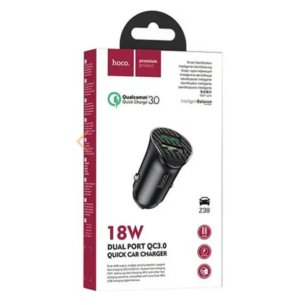 CARGADOR P/AUTO DUAL USB QC3.0 18W Z39 HOCO