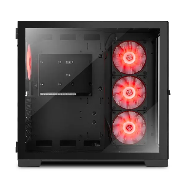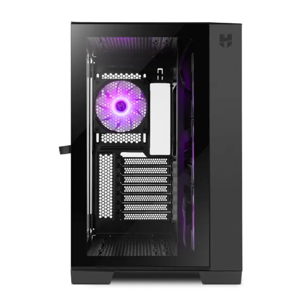 El diseño del chasis está optimizado para admitir hardware de gran tamaño, incluidas tarjetas gráficas de perfil alto y sistemas de refrigeración líquida, ofreciendo espacio y compatibilidad para configuraciones exigentes. El gabinete se entrega sin fuente de poder (PSU no incluida), permitiendo elegir la unidad de potencia que mejor se adapte a la configuración del usuario. Es compatible con placas madre ATX / micro-ATX / ITX, brindando flexibilidad y versatilidad para distintos builds.
