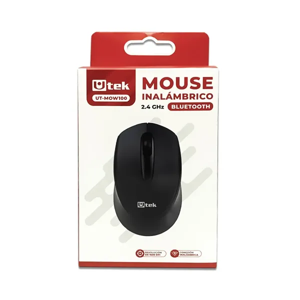 El Mouse Bluetooth + 2.4 GHz Silencioso Utek UT-MOW100 es un ratón inalámbrico versátil que ofrece conectividad dual: