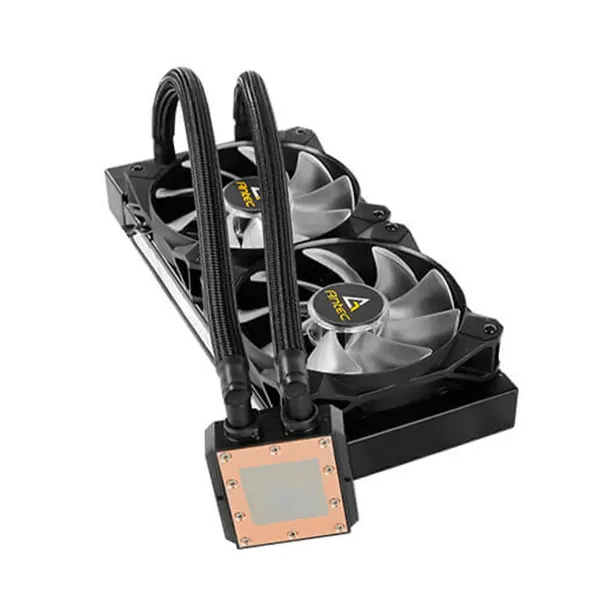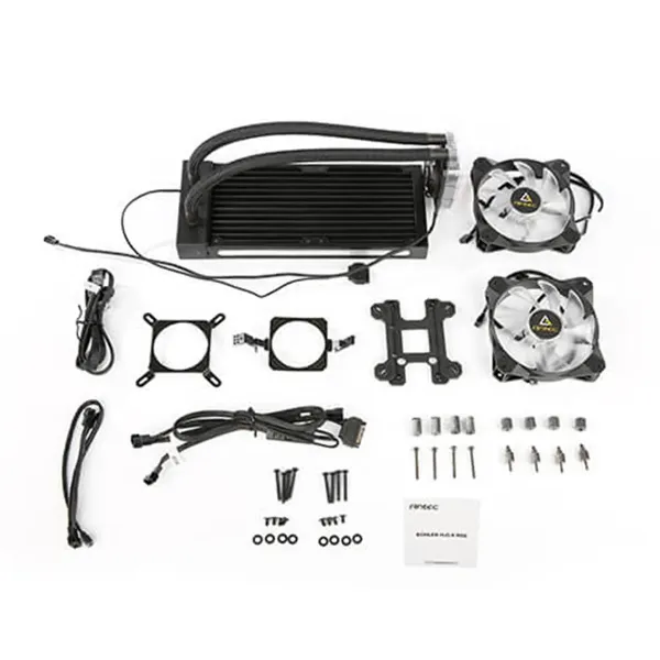 El Ventilador CPU Water Cooler Kuhler K240RGB Antec es un sistema de refrigeración líquida All-in-One (AiO) diseñado para mantener la temperatura de la CPU bajo control incluso durante cargas de trabajo intensivas como gaming, edición de video o renderizado. Su radiador de 240 mm ofrece una mayor superficie de intercambio térmico, facilitando la disipación de calor de forma eficiente y estable.
