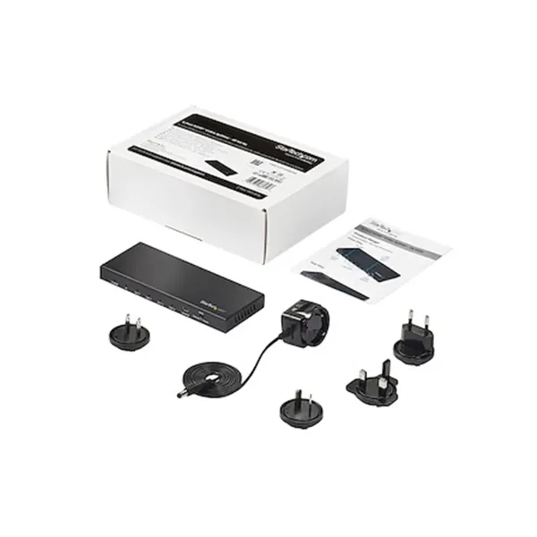 El video splitter HDMI 1×4 de StarTech es un dispositivo que permite duplicar una señal HDMI desde una sola fuente a cuatro salidas simultáneas, sin pérdida de calidad de imagen ni de audio. Ideal para instalaciones de señalización digital, salas de conferencia, aulas, showrooms y aplicaciones de entretenimiento donde necesitas mostrar el mismo contenido HDMI en varios monitores o pantallas.